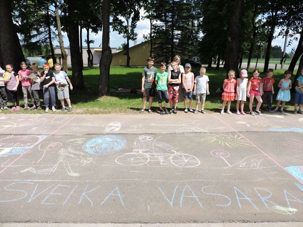 Ir kaip gi neužbaigti mokslo metų be aktyvių žaidimų? Varžėmės žiedų mėtymo rungtyje, bėgome su maišais, piešėme su kreidelėmis ant asfalto apie saugią ir linksmą vasarą, gaudėme balionus...